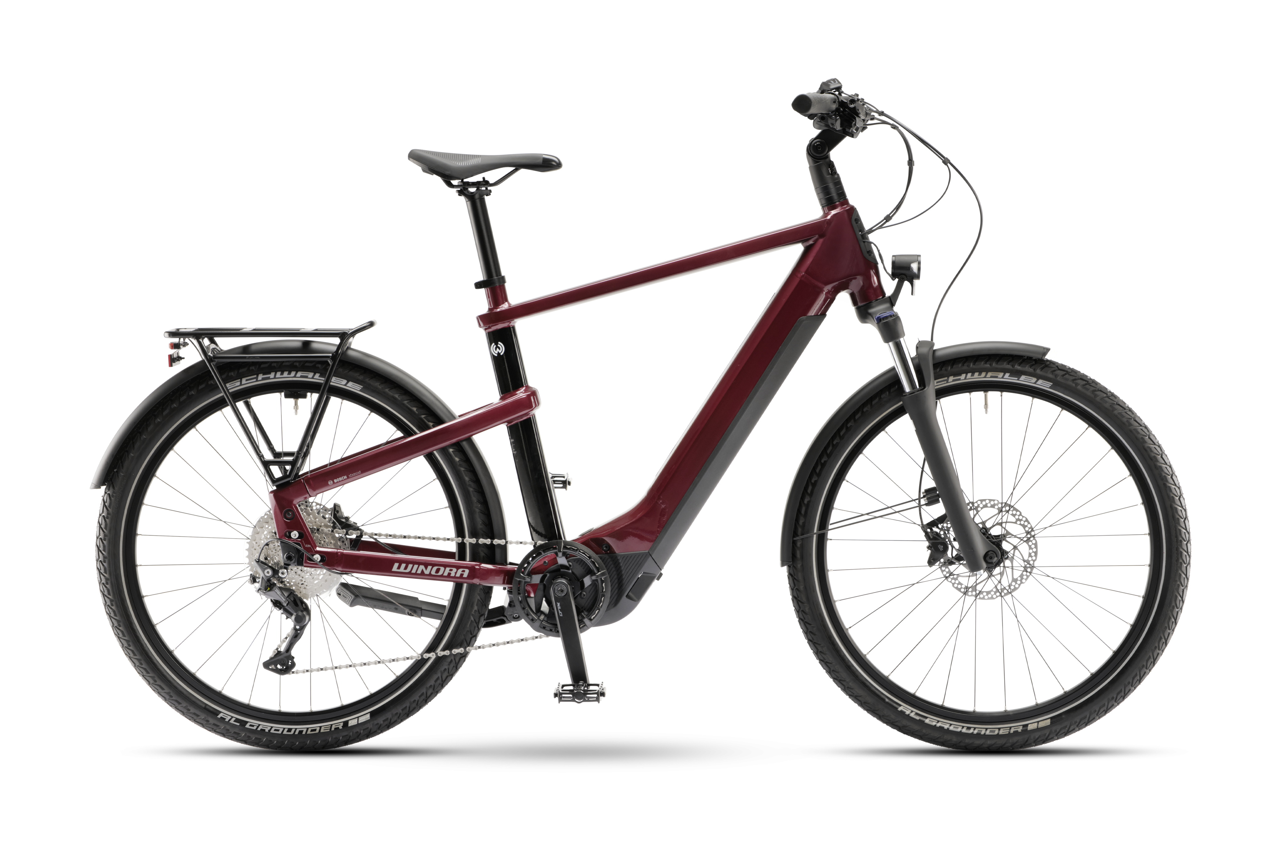 Wenn sich selbst der Montagmorgen wie ein Freitagnachmittag anfühlt. Das Winora Yakun X10E macht dank SUV-Ausstattung jede Fahrt zum rollenden Vergnügen. Das robuste Trekking eBike ist auf der Straße genauso zu Hause wie auf Wald- und Schotterwegen und punktet mit einer kompletten Ausstattung für alle Bedürfnisse. Der leistungsstarke Bosch Performance CX Smart System Motor unterstützt dich effizient und ausdauernd, auch wenn du mit Gepäck unterwegs bist. Denn das kannst du ganz einfach auf dem serienmäßigen Gepäckträger hinten sowie auf dem optionalen Frontgepäckträger verstauen. Mit der zuverlässigen 10-Gang-Schaltung findest du immer die perfekte Übersetzung. Und die hydraulischen Shimano Scheibenbremsen sorgen dafür, dass du dein eBike in jeder Situation voll im Griff hast. Eine StVZO-konforme Ausstattung rundet den Auftritt des Yakun X10E ab und macht es zu einem vielseitigen Einsteiger-Trekking-eBike zum fairen Preis.